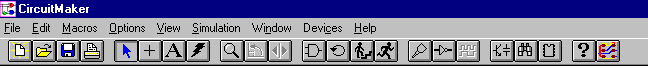 The first four icons are standard: open a new document (a circuit in this case), open an existing circuit, save, print. The next most commonly used tools are the following: